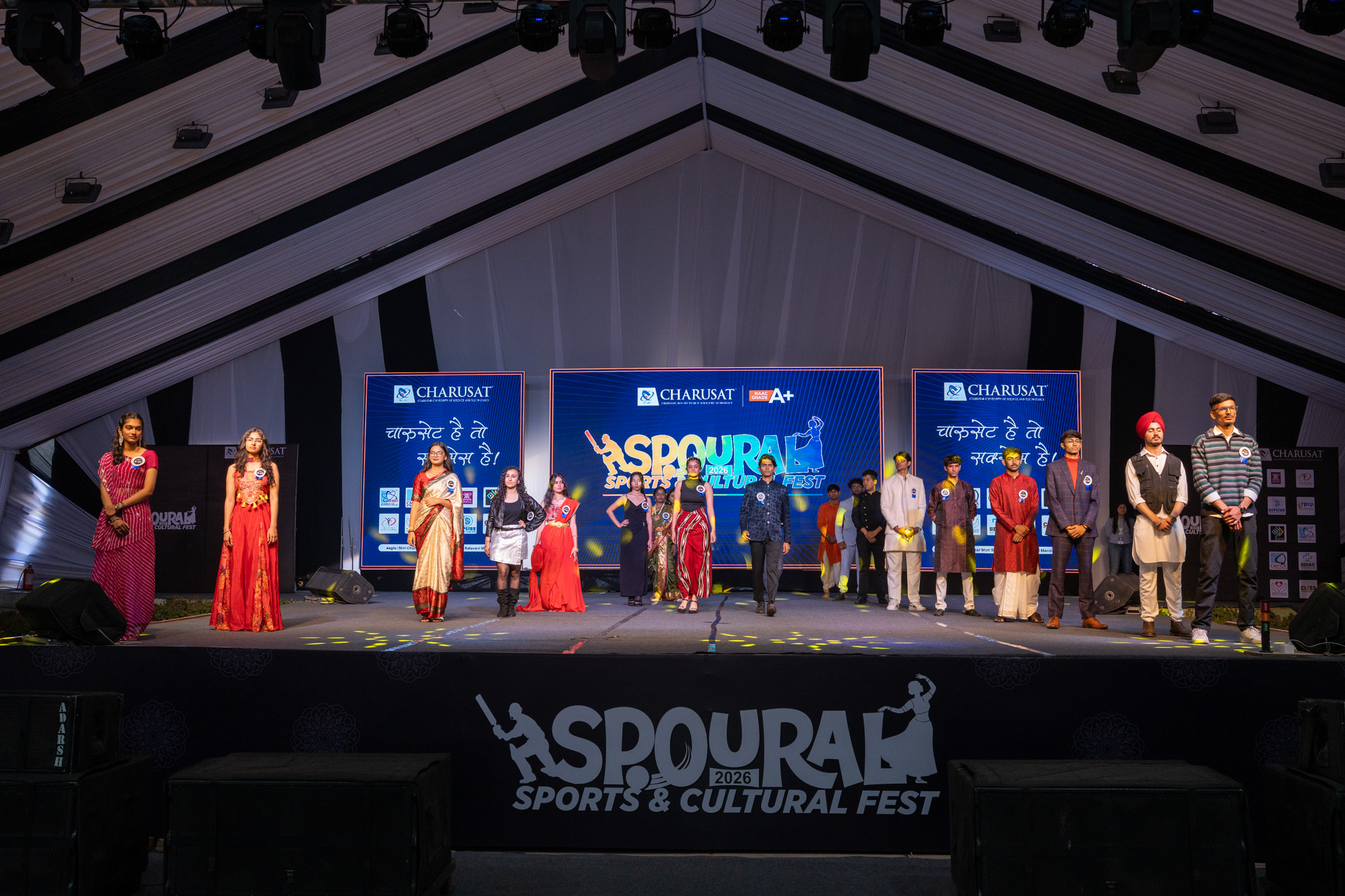 Spoural is the annual sports and cultural festival of CHARUSAT, aimed at fostering student talent, enthusiasm, and teamwork across the university campus. The festival encompasses a wide range of sports activities, including cricket, football, volleyball, basketball, badminton, table tennis, athletics, and chess, promoting healthy competition, discipline, and sportsmanship among students from various institutes. In addition to sports, Spoural features a variety of cultural events such as dance performances, music, drama, fashion shows, debates, and other creative competitions, providing students with a comprehensive platform for artistic expression. Throughout the festival, the campus is enriched with energy, engagement, and a sense of unity, enabling students to step beyond academic pursuits, develop confidence, and create lasting memories. Spoural stands as a reflection of the vibrant student community and the university’s commitment to holistic education.